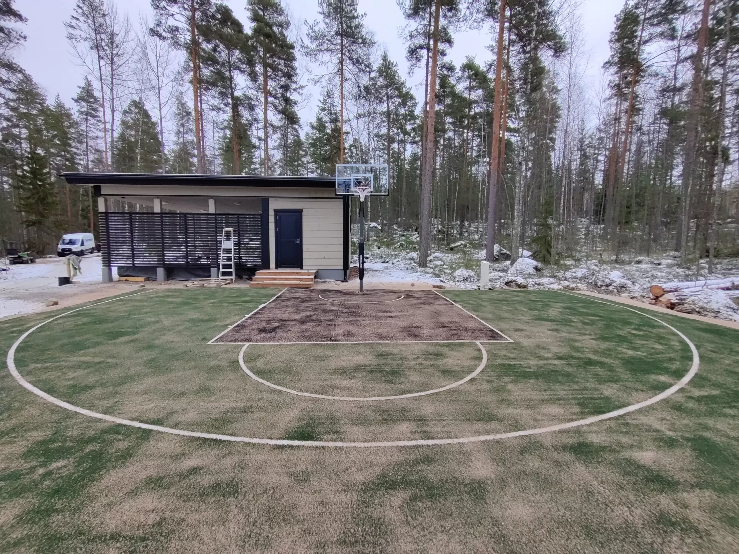 Building a basketball court requires careful planning and high-quality materials. We use specially manufactured Playgrass 20mm sand-filled artificial grass for building basketball courts, which is an extremely durable and long-lasting material.