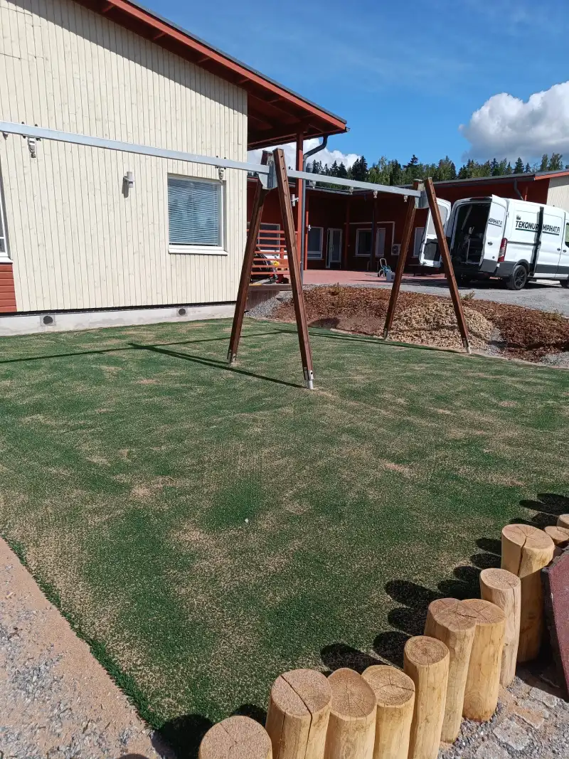 Hiekkatekonurmi on erinomainen valinta leikkipaikoille ja ulkoliikuntapaikoille sen kestävyyden ja monipuolisten peliominaisuuksien vuoksi. Se on erittäin kulutusta kestävää ja kestää hyvin erilaisia sääolosuhteita.